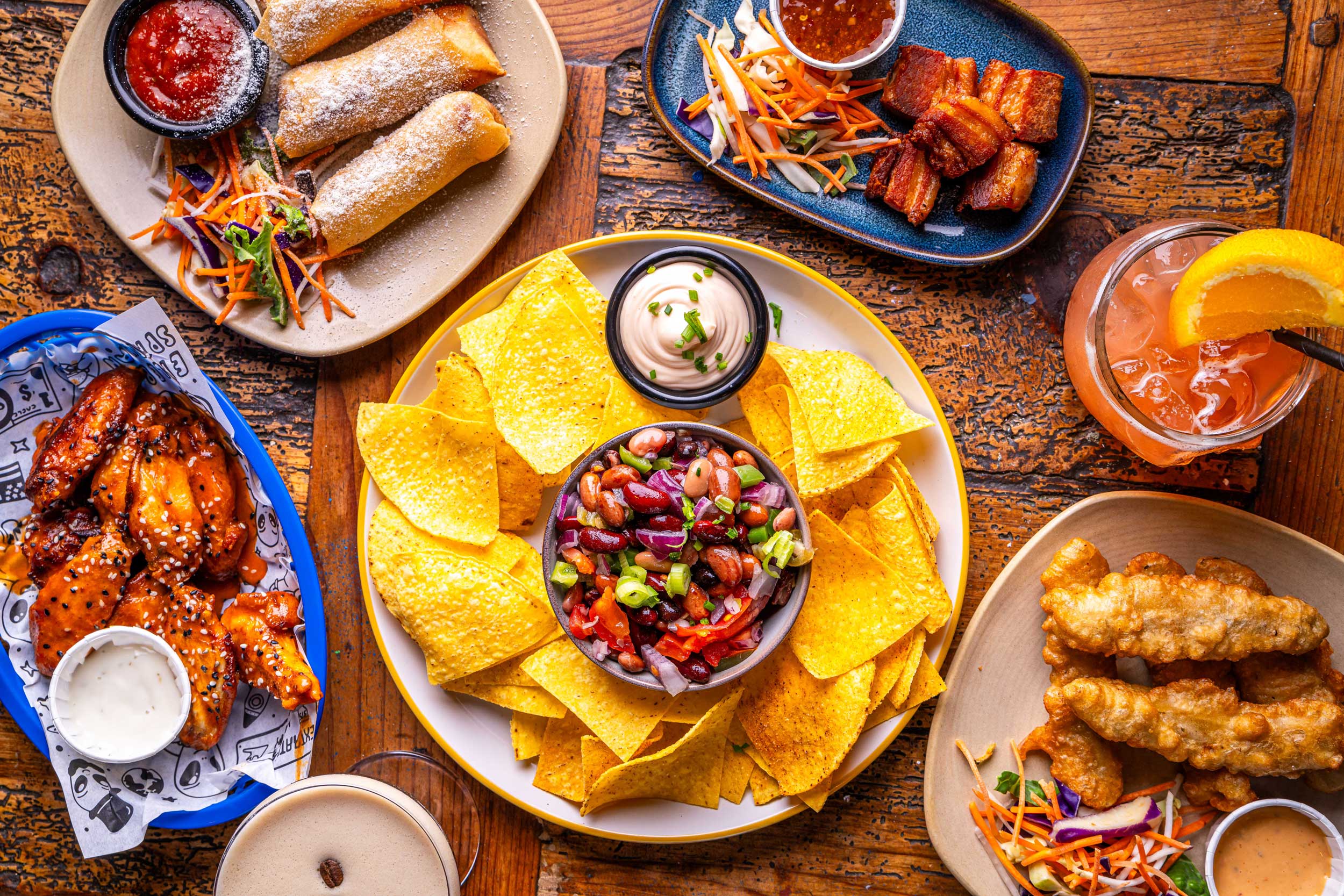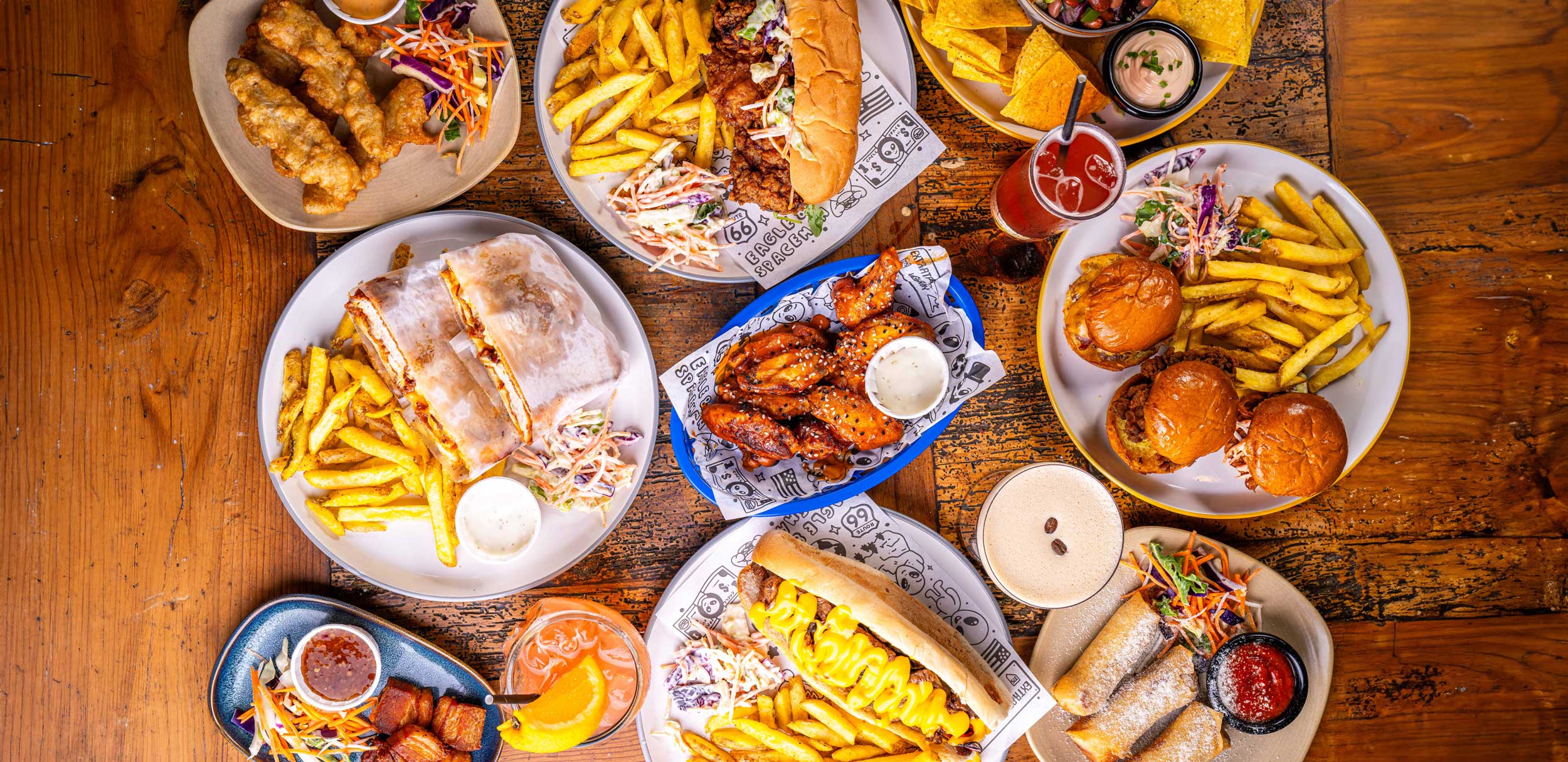 Dive into our American-inspired menu, featuring Giant Corn Dogs, Smoked Chicken Wings, and the Signature Eagle & Spaceman Burger.